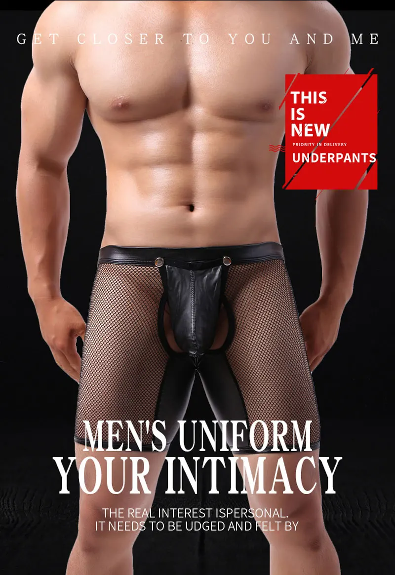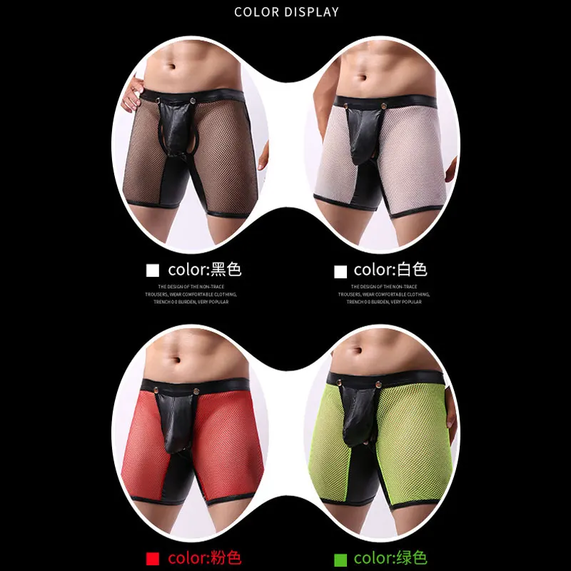 Мужские трусы-боксеры из искусственной кожи u-образной формы с открытой промежностью, сексуальные короткие трусы-боксеры для геев, эротическое нижнее белье размера плюс F17