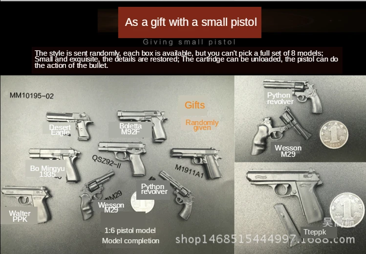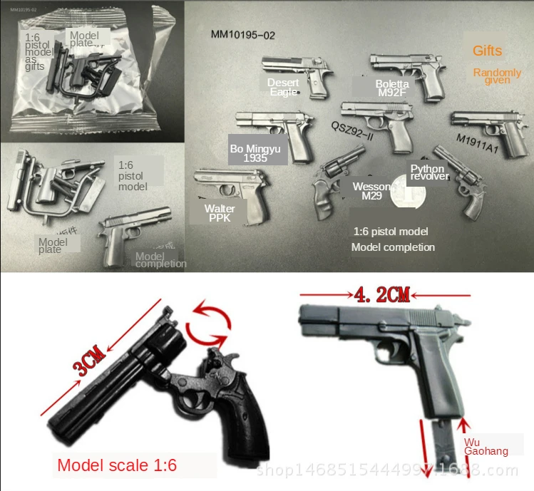 Соотношение модели 1:6, длина пистолета составляет около 185, разные стили и размеры немного отличаются