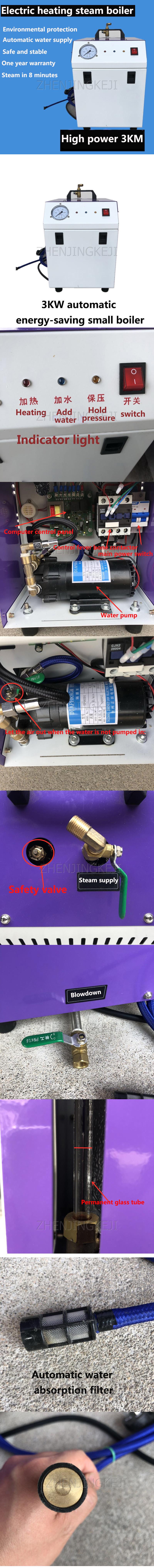Название: парогенератор Модель: ZQFSQ-01 Напряжение: 220 В Мощность: 3 кВт Вес: 19 кг Размер: 43*30*43 см Расход топлива: 3 кВт Выход пара: 5