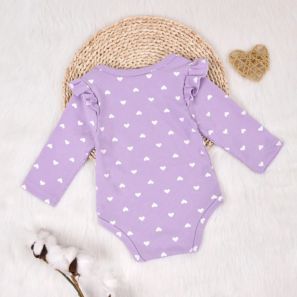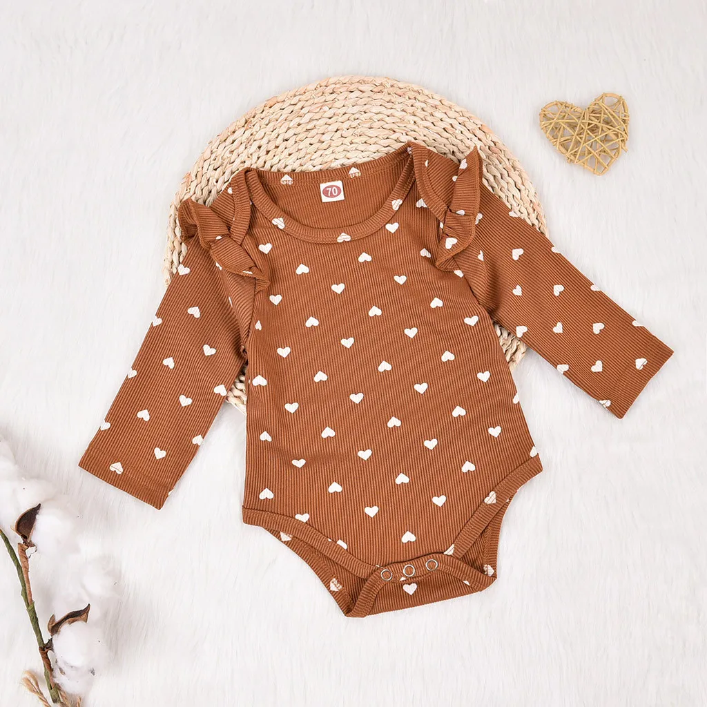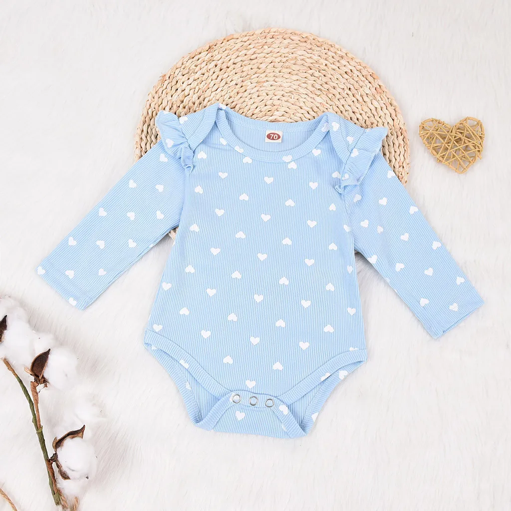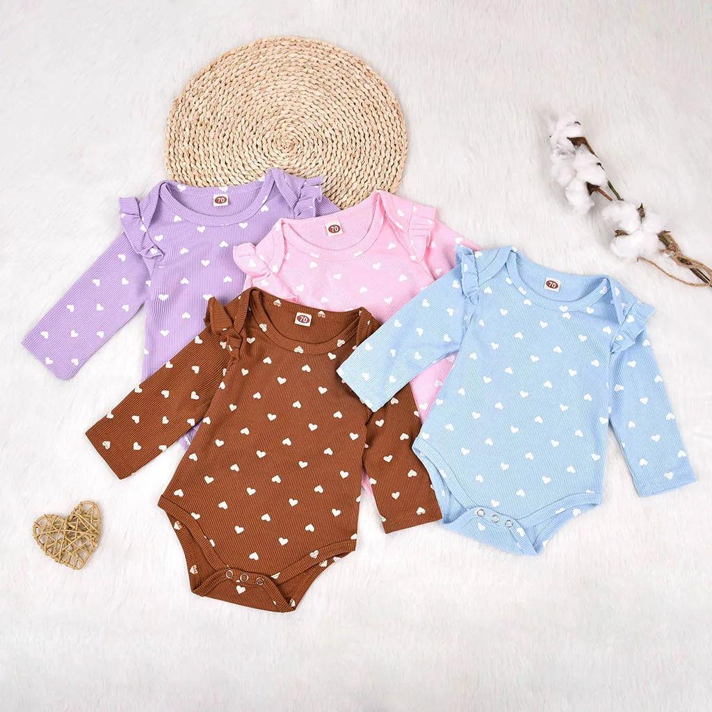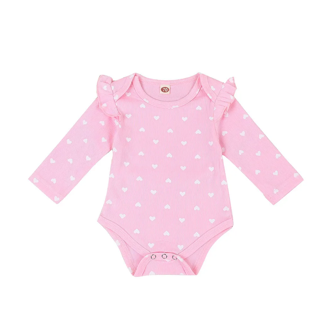 Детский комбинезон с длинными рукавами и принтом в виде сердечек для новорожденных девочек; Боди; Одежда