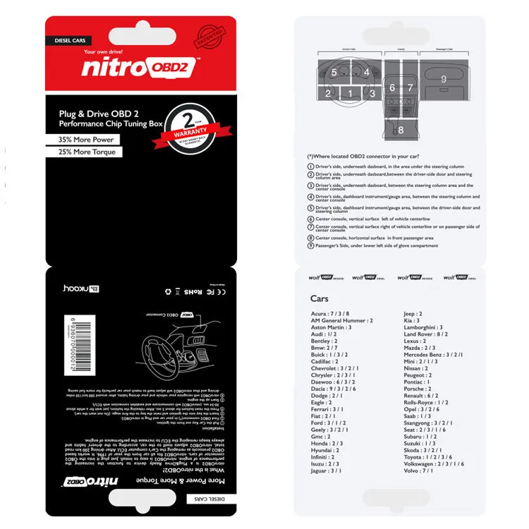 Это NitroOBD2 чип тюнинг коробка специально сделана для дизельных автомобилей и имеет два Годовая гарантия.