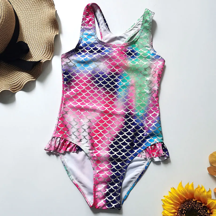 5-12 Years Girl Swimwear Kids Mermaid One Piece Swimsuit Girl Vintage Children Swimwear Ruffle Girl Bathing Suit Beachwear 2020