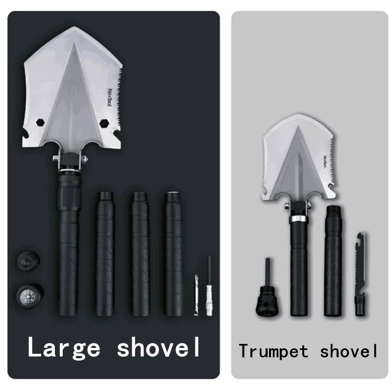 Шестигранный ключ (большая лопата):Подходит для шестигранных гаек 12 мм или 14 ммСпасательный свисток (большая лопата):Свисток для выживания с высоким уровнем децибел, свисток для помощи в дикой природе,Эффективное повышение эффективности спасения
