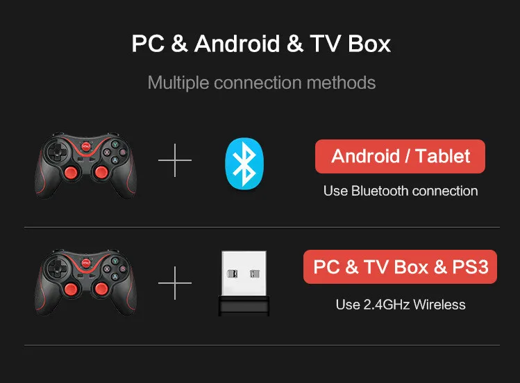 Примечание: хотя этот геймпад подключен по Bluetooth, он может быть совместим с устройствами PC, TV Box и PS3, но вам нужно подобрать специальный приемник, когда вы хотите подключить контроллер, чтобы играть в игры через эти устройства.
