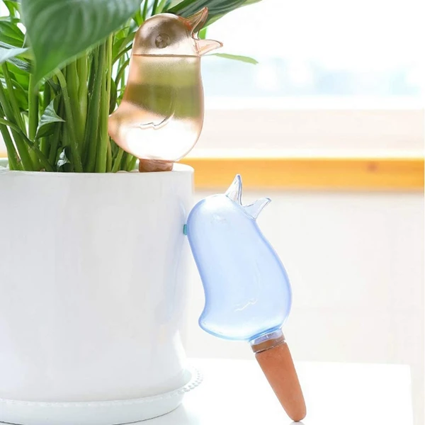 EAST TO USE:Just fill water in the watering plant bulb and then insert it into soil,and the water will slowly ooze out,eliminating the trouble of watering every day.By observing the transparent body of the bird,you can know how much water is used and whether you need to add water.
