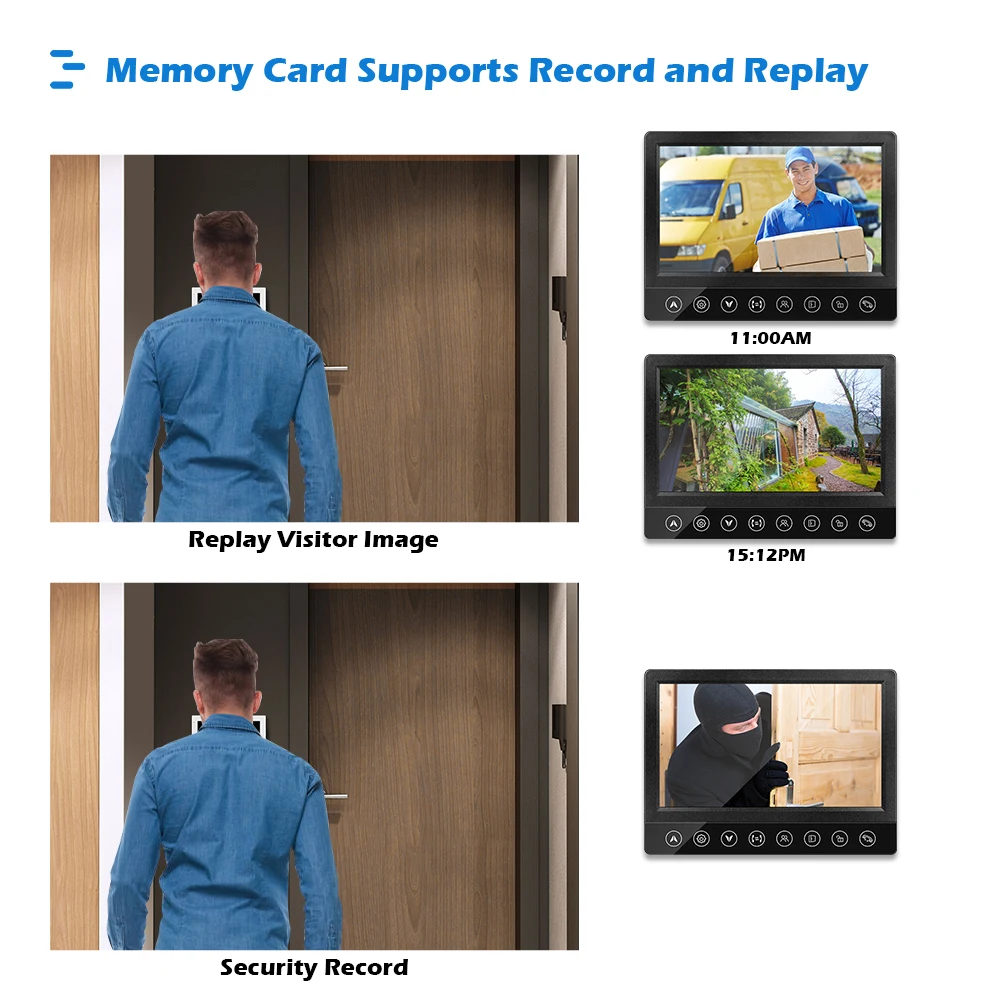 🔓Монитор имеет 2 способа разблокировки, одна Независимая кнопка разблокировки, может разблокировать дверь в любой чехол. 🔑Другой-кнопка разблокировки, которая может разблокировать дверь во время вызова и мониторинга.