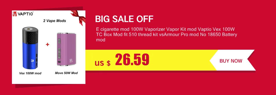 Размер бака: 22*46,3 мм Емкость атомайзера: 2,0 мл Диапазон мощности: 30-80 Вт