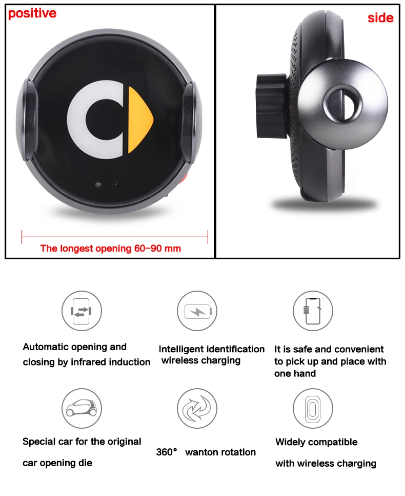 Материал: основание из алюминиевого сплава + кронштейн из ПВХ Цвет: черный Функция: Беспроводной зарядки Способ установки: вилка и Место установки: радио, экран, воздушный выход Особенности: Встроенный смарт-чип, интеллектуальная идентификация беспроводного оборудования для быстрой зарядки, не боится внезапного торможения, быстрого ускорения, ударов и других дорожных условий, стабильный и безопасный, 15 Вт Мощность (макс.) и 5 В/9 в Двойная зарядка 3 режима инвертор Быстрая зарядка более стабильная, защищает ваш мобильный телефон, безопасное вождение. Поддержка Мобильный телефон Максимальная ширина: 85 мм Применимые модели: Smart 453 451 450 Fortwo Forfour Инструкции по использованию: 1. Поместите винт на верхний шар держателя и нажмите на машину, соединяющую с винтом, и затяните вращением. Эти шаги используется для вентиляционных отверстий и держателей центральной консоли. 2. Что касается держателя центральной консоли, вам нужно будет снять защитную пленку снизу и вставить в нужное вам положение, лучше быть на пластине и нажмите некоторое время, чтобы сделать его более стабильным. 3. Аккуратно нажмите кнопку на правой стороне зарядного устройства, он отпустит ваш телефон и автоматически открывается. 4. Нажмите правую кнопку для 3s для включения/выключения функции беспроводной зарядки. 5. Аккуратно нажмите кнопку на спине, чтобы выключить функцию инфракрасной индукции.