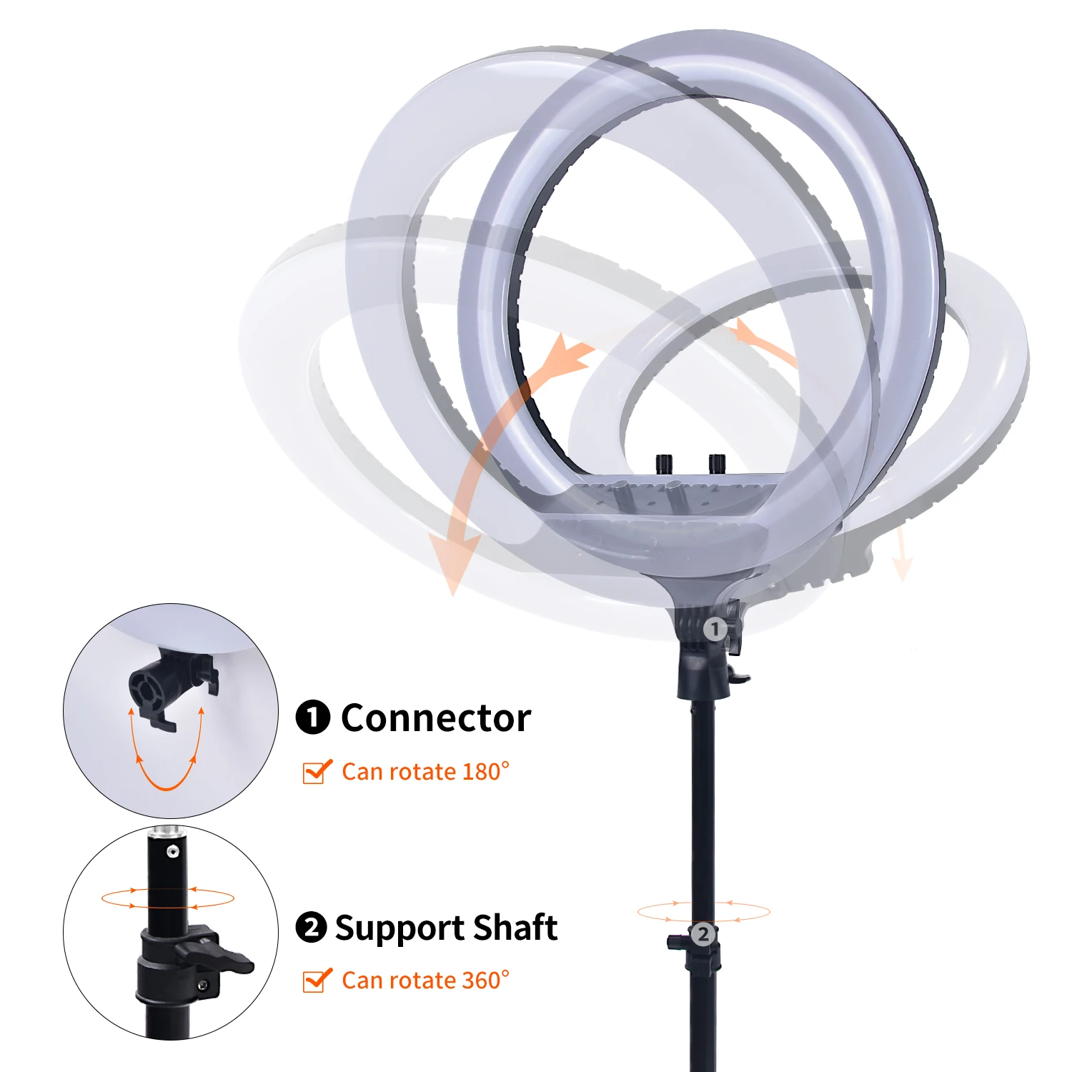 Этот rgb-светодиодный кольцевой свет поставляется в двух размерах, эта лампа имеет новую технологию RGB, которая увеличивает область применения лампы. Кроме того, дуговая поверхность этой лампы увеличивает диапазон облучения лампы. Кроме того, мы Оснащены пультом дистанционного управления для управления светом. Если вам не удобно регулировать кнопки на свету вручную, этот пульт дистанционного управления будет играть для вас ключевую роль. Также есть два usb-порта на задней панели лампы, которые могут заряжать ваше электронное устройство, это очень удобный и удобный дизайн.