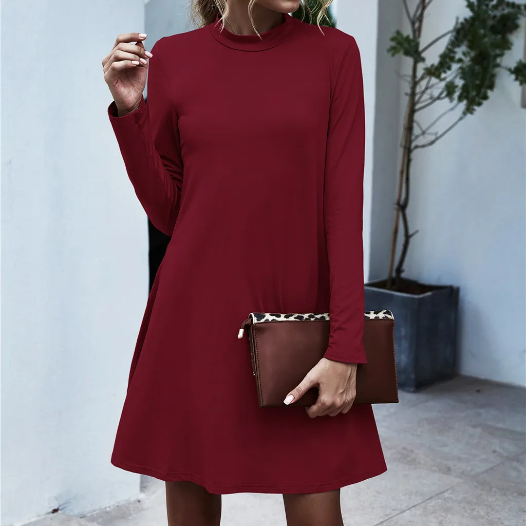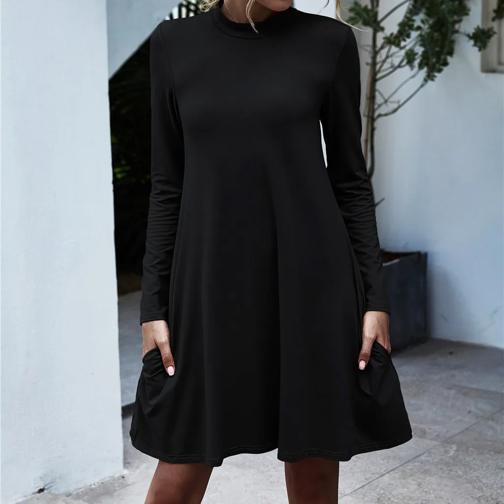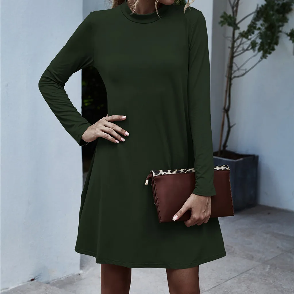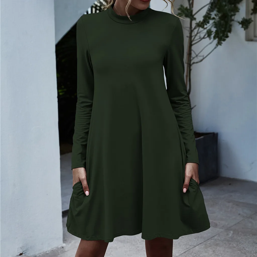 Женское однотонное платье с длинными рукавами и воротником-стойкой