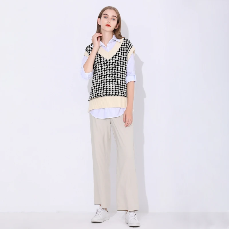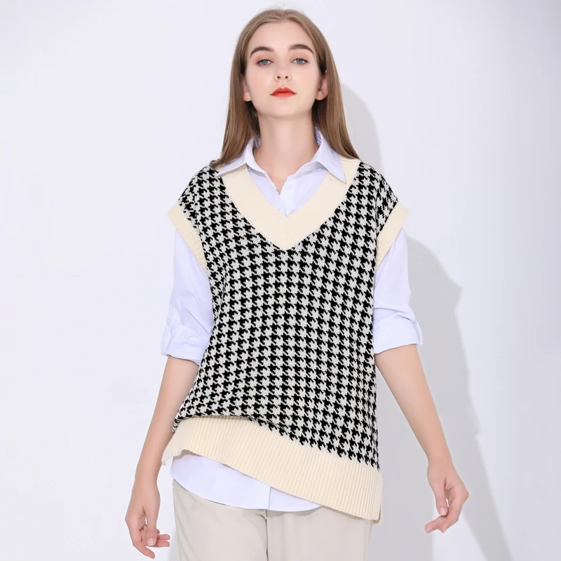 2. Этот свитер-жилет в стиле оверсайз, вы можете взять меньший размер, чем обычно заказываете, или вы можете обратиться к таблице размеров для измерения.