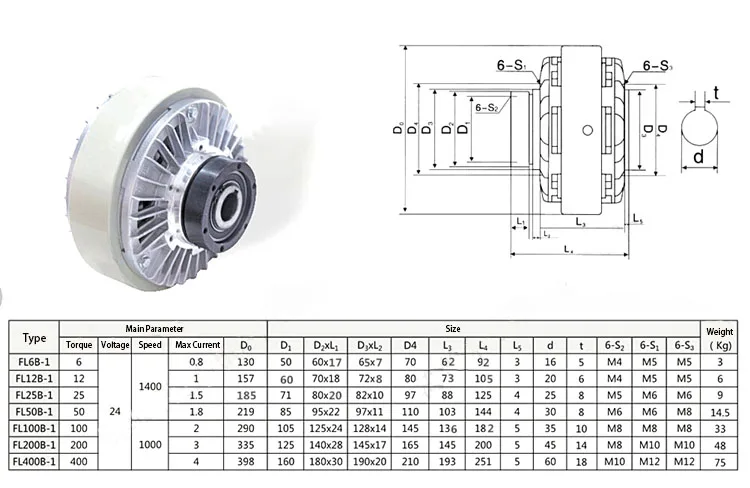 FL50B-1 5 кг полый вал магнитный порошок сцепления обмотки тормоза для контроля натяжения мешков печать упаковки крашения машина