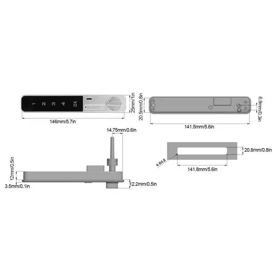 Размер панели блокировки: прибл. 146x25 мм/5.7x1in