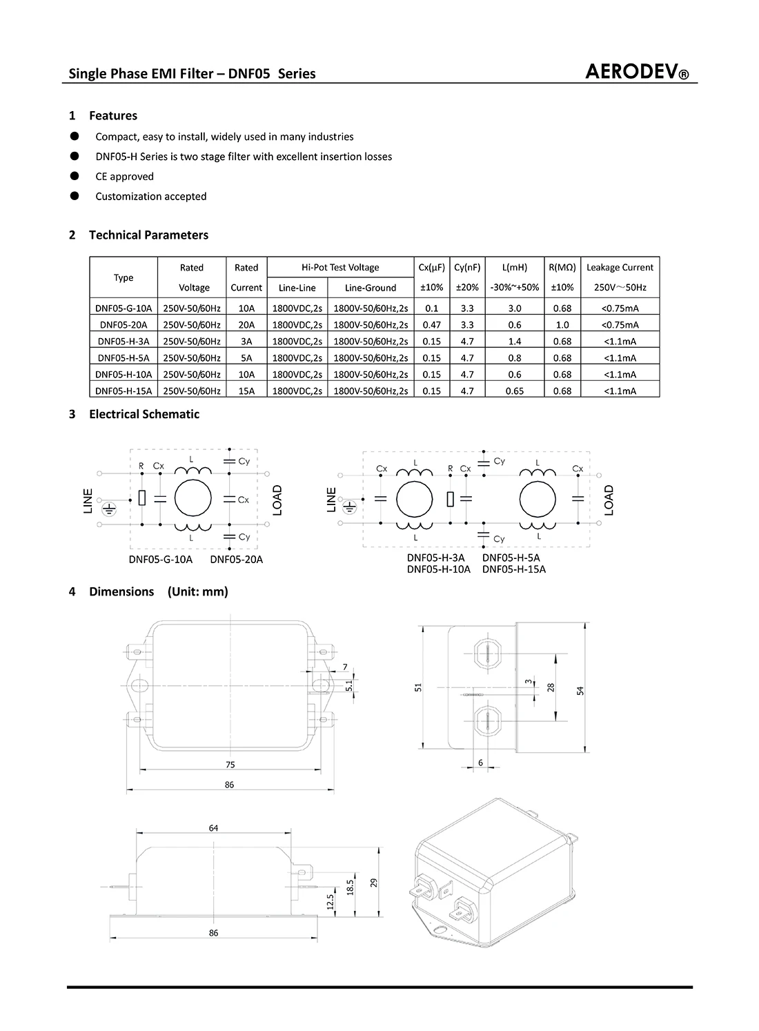 Однофазный фильтр EMI