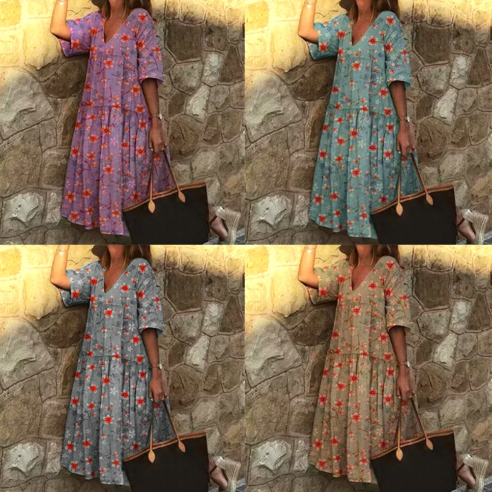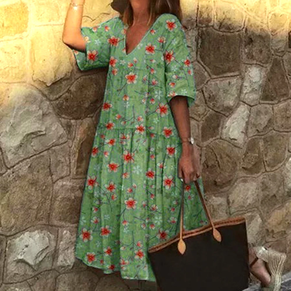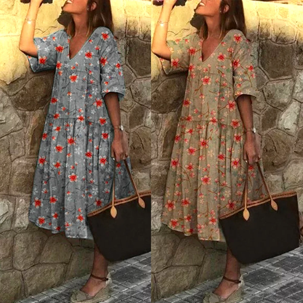 Женское плявечерние платье средней длины с V-образным вырезом и цветочным принтом
