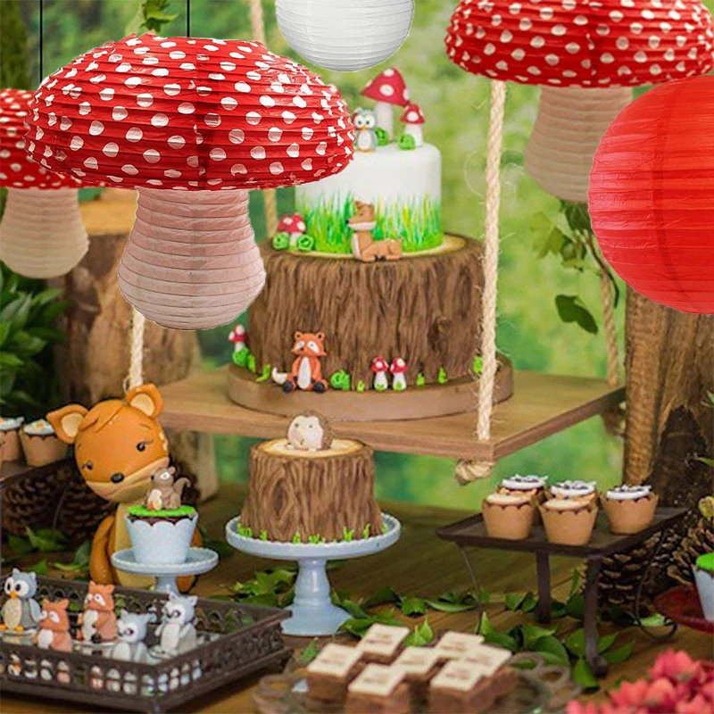 10 шт., красный, белый бумажный фонарь, набор бумажных фонарей в виде грибов для феи, вечеринки, страны чудес, тема, детский душ, украшение для дня рождения