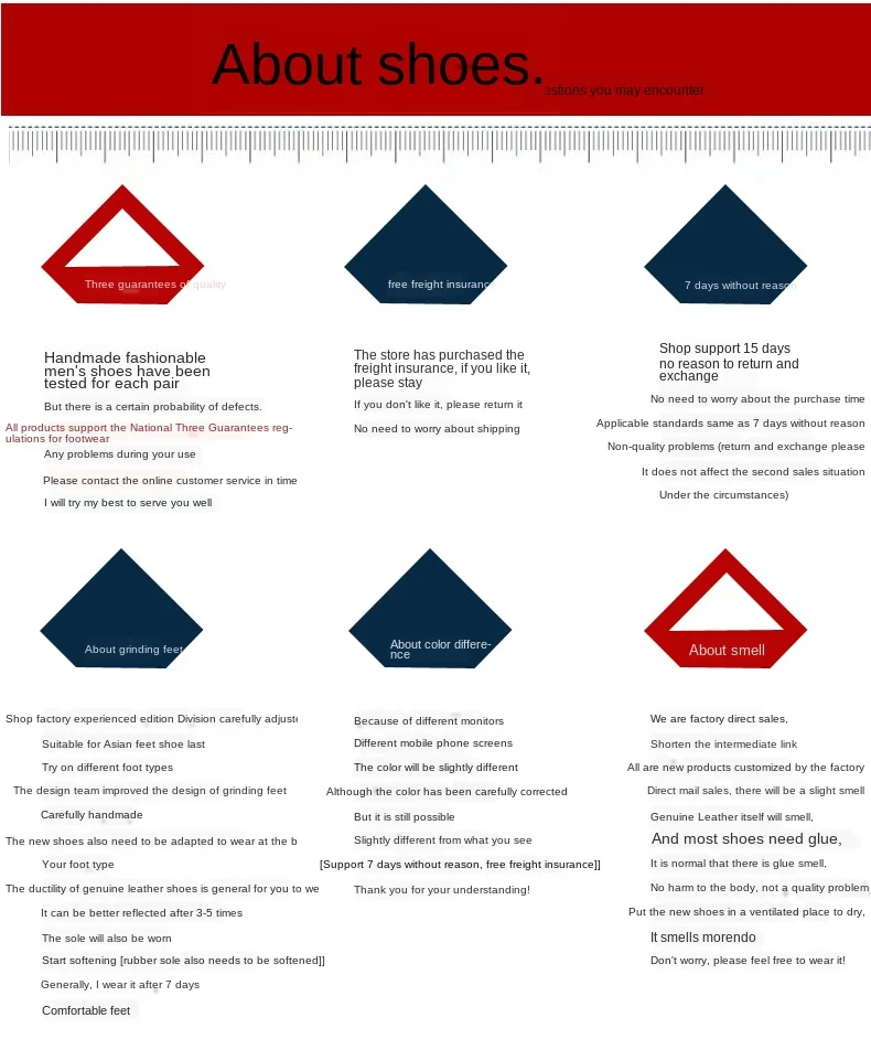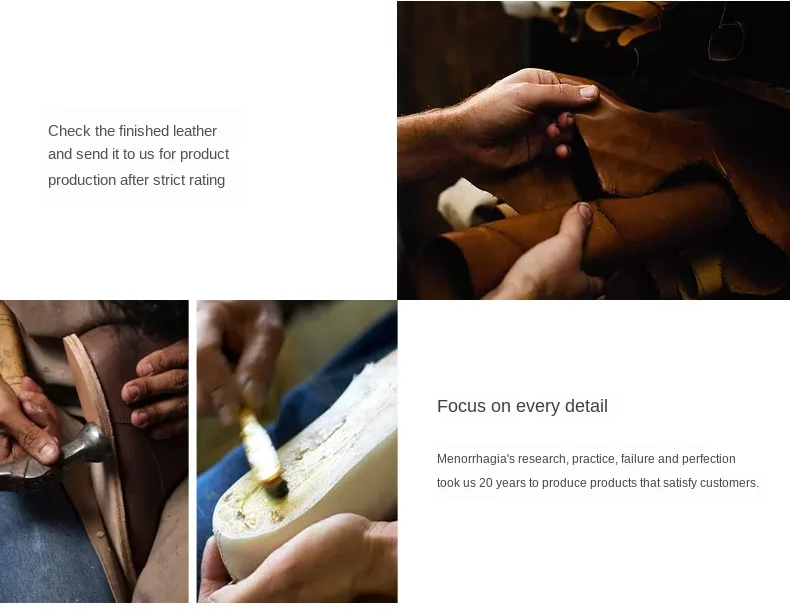 Вся кожаная обувь, продаваемая в нашем магазине,-это натуральная кожа, Воловья кожа, внутренняя свиная кожа, резиновая подошва. Некоторые клиенты будут спрашивать, почему продукты такие дорогие. В других магазинах только около 100 юаней. Однако, учитывая стоимость материалов, пара готовой обуви не означает, что она может быть изготовлена из 100 юаней, пара из натуральной кожи от обувника составляет менее 200 или 300 юаней, не говоря уже о первый слой из воловьей кожи. Как вы думаете, это может быть настоящая кожа?