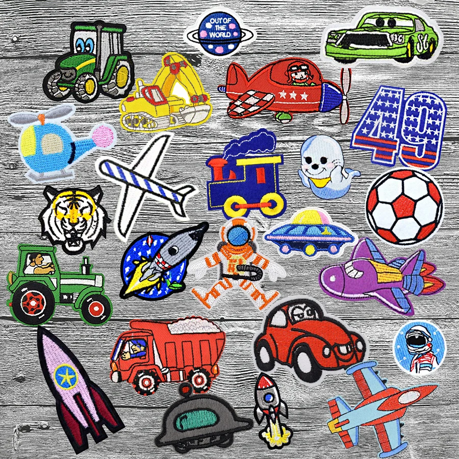 Случайный мальчик патчи для одежды смешанный мультфильм автомобиль самолет животное аппликация патч железо на вышитые DIY Одежда Шить Аксессуары