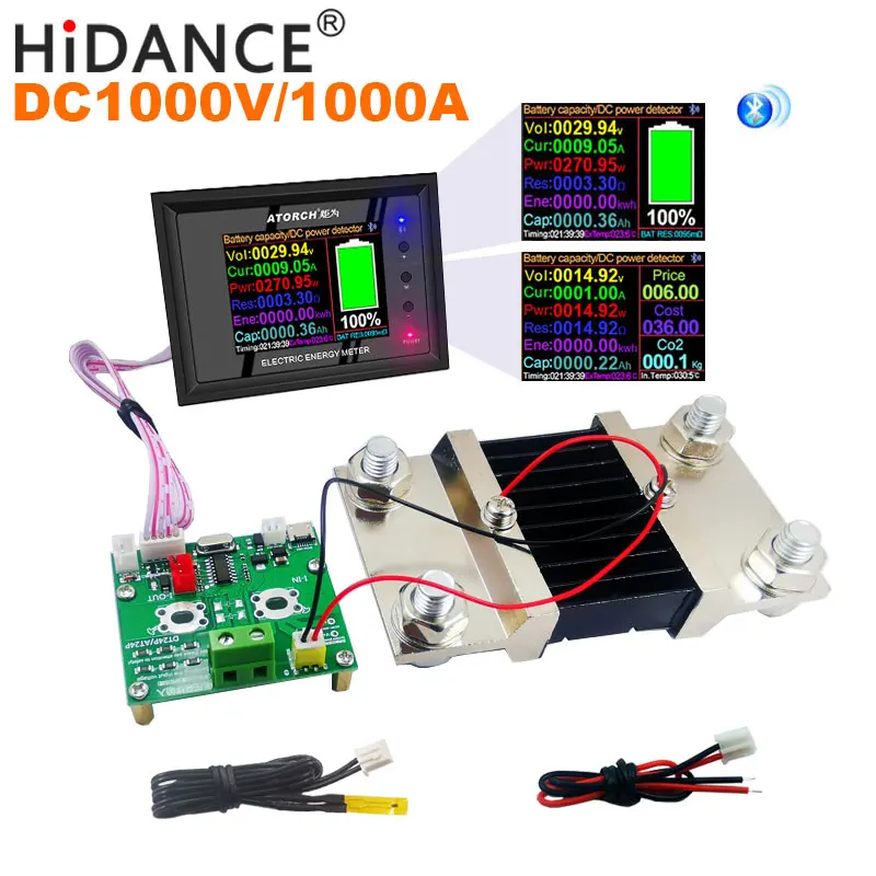 1, 2,4-дюймовый цвет постоянного тока Вольтметр с экраном x 1 шт. 2.54 мм термощуп X1pcs Шунт 3500 а x 1 шт. 4. Независимая линия электропитания x1шт 5.5 контактный кабель x 1 шт.