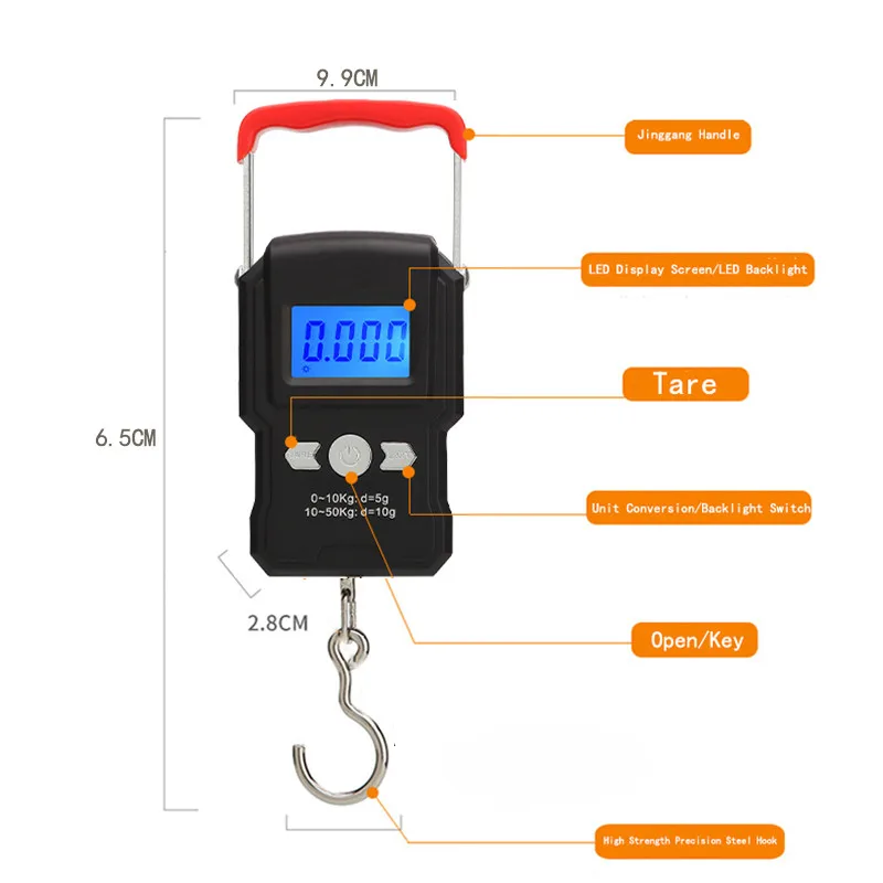 -- Портативный: цифровые весы с металлическим ручным ремешком, они могут быть растянуты для удобной и удобной переноски и хранения.