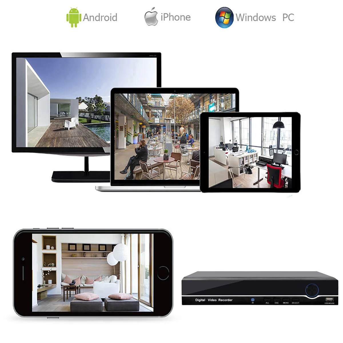 Поддержка Windowns PC,iPhone,Android мобильный доступ