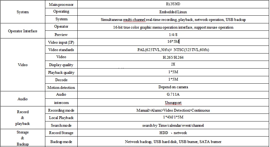 Поддержка HDMI VGA 2K выход; Поддержка веб, CMS, программного обеспечения для управления центральной платформой XMEYE, Обеспечить разработку SDK; Поддержка нескольких облачных технологий, проникновения сети, сигнализации Информация подталкивается к телефону и другим функциям; Поддержка нескольких сетевых услуг (Поддержка DHCP, FTP, DNS, DDNS, NTP, UPNP, электронная почта, ip-поиск, центр сигнализации и т. д.)