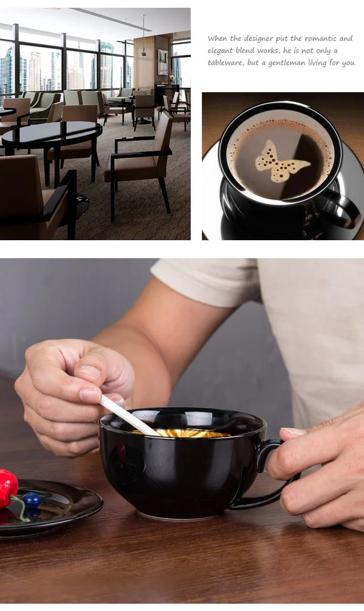 Черный Керамика Кофе чашка с блюдцем ложка кружка латте капучино молочной Чай чашки, простые лампы в европейском Стиль дома чашка для питья كوب لاتيه