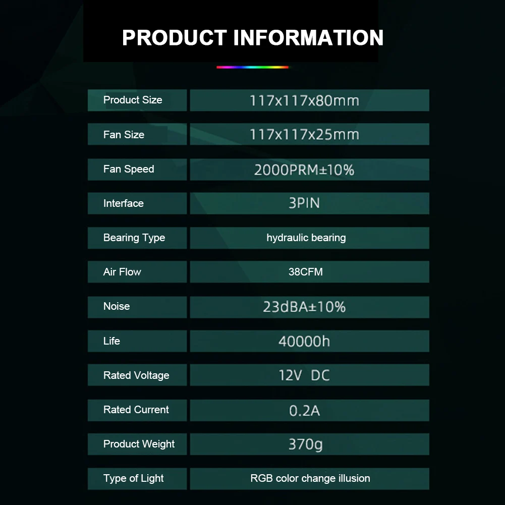 * 15. Размер вентилятора: 117x117x25 мм