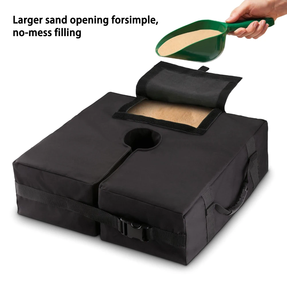 * 4. Легко установить: весовой пакет в форме зонта легко заполняется песком и имеет большое отверстие, чтобы быстро заполнить мешок, а затем обернуть мешок вокруг любого зонтичного полюса.