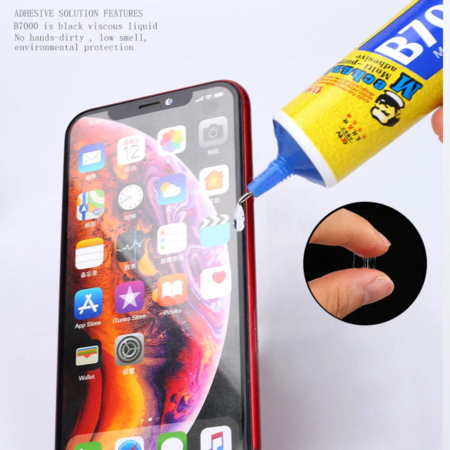 --Brand : Mechanic. --Material : Epoxy resin. --Type : Liquid Adhesive Glue. --Color: Black/Transparent/Milk-white. --Size: 15ml. --Adhesive Level: Medium Viscosity. --Model: T9000 T7000 E8000 --Suit able for Glass, Plastic, Acrylic rhinestones, PE , PP, PVC, ABS, touch screen repair.
