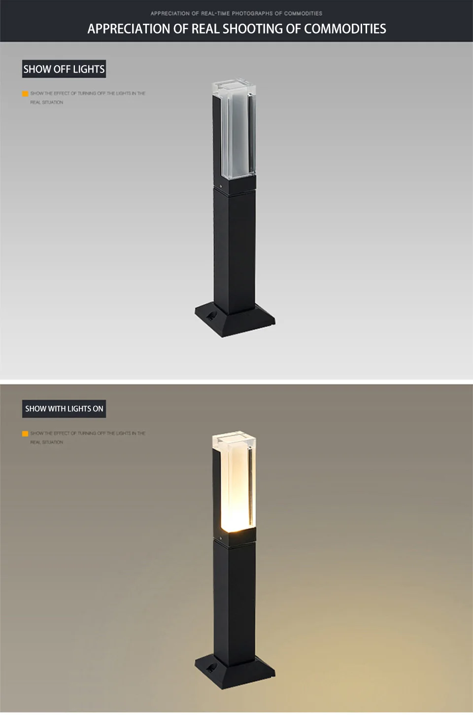 Светильник источник света: COB светодиодный Материал: литой алюминий + стекло Светильник Цвет: Теплый светильник Напряжение: 110-220 В IP Рейтинг: IP54 Высота: A Высота секции 30 см/B высота секции 30 см/C высота секции 30 см/D высота секции 20 см Проводка: Да