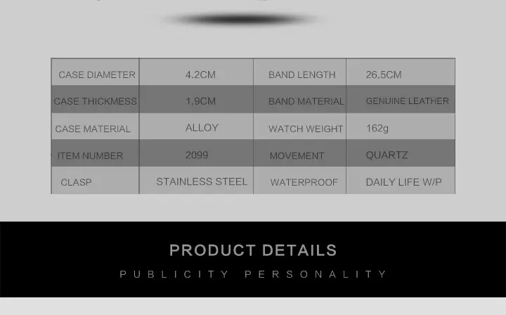 Основные моменты: 1. Функция: дата, время 2. Тип: мужские модные часы 3. Механизм: аналоговый дисплей 4. Материал ремешка: кожа 5. Показывает точное время 6. Это лучшие подарки на Рождество, Новый год и день рождения и так далее Особенность: Диаметр чехла: 4,2 см Толщина чехла: 1,9 см Длина ремешка: 26,5 см Ширина ремешка: 3,2 см Вес: около 162 г Что в посылка 1 часы История бренда Часы бренда BOAMIGO состоят из обновленных классических часов для более сознательного потребителя моды. Часы оснащены большими корпусами, специальными и спортивными кожаными, резиновыми или металлическими ремешками для создания свежего образа. А наши часы сочетают в себе качество, передовую моду, дух спорта и ценность. А также является модным и повседневным для повседневного наряда. Наши часы всегда имеют хорошую цену, но недорогую цену. Приглашаем любого клиента наслаждаться нашими часами и позволить вам стать более модными. Вам также могут понравиться: