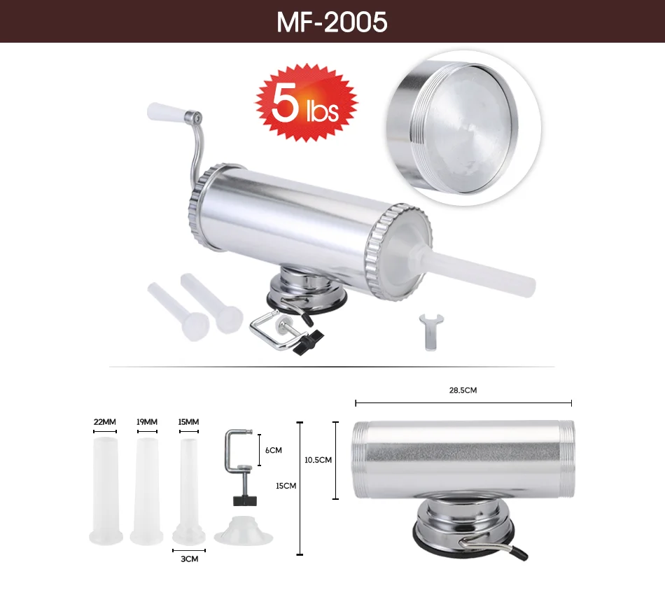 【 Различные размеры колбасных tubes】этот колбасный Производитель поставляется с различными размерами колбасная трубка для начинки для вас, чтобы сделать различные размеры колбас и Салам. 【Горизонтальная и всасывающая основа дизайн наш Колбаса stuffer разработан с горизонтальной, это значительно экономит труда. И прочная основа для обеспечения стабильности во время изготовления колбас. 【 Емкость для дома 】с различной емкостью, вы можете наслаждаться свежими сосисками с семьей и друзьями в еде. 【Простая ручная работа 】вы можете поставить колбасный шприц на край гладкой рабочей скамьи или стола с помощью всасывающего основания, перематывать силиконовый поршень из цилиндра, чтобы положить в фарш через наполнение сопла. Затем, повернув кривую ручку по часовой стрелке, ваши прекрасные свежие сосиски готовы в течение нескольких минут. 【Disassemable & Ручная стирка only】вы можете удалить все поворачивающиеся части и воронку после каждого использования. Промыть шприц горячей водой, а затем высушить.