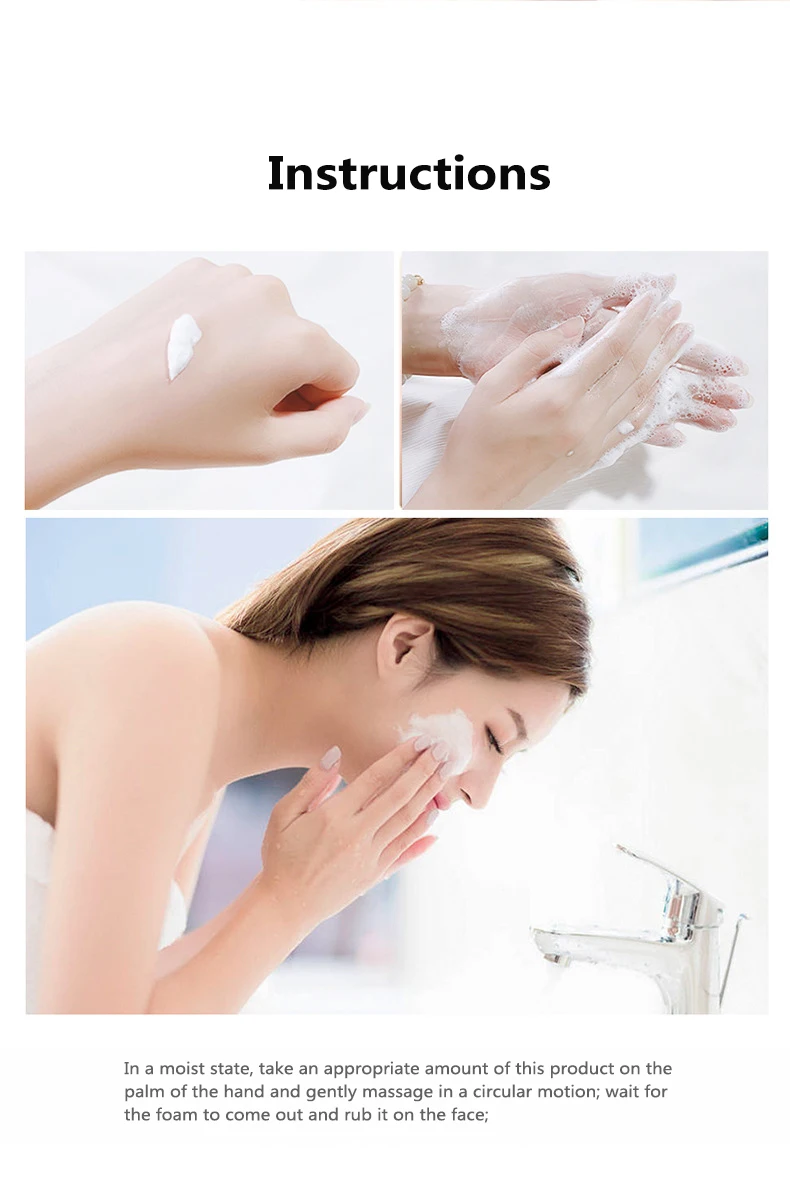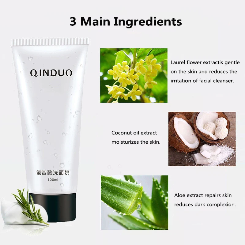 1. Недавно разработанное аминокислотное очищающее средство для лица, богатая пена, подходит для большинства типов кожи.