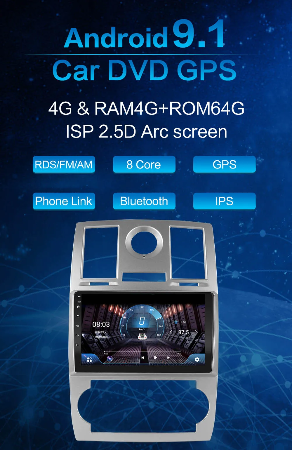 Android 10,0 автомобильное радио для Chrysler Aspen 300C 2004 2005 2006 2007 2008 9 дюймов 1024*600 восемь ядер wifi Bluetooth Видео Аудио мультимедиа 2 din автомобильный dvd плеер