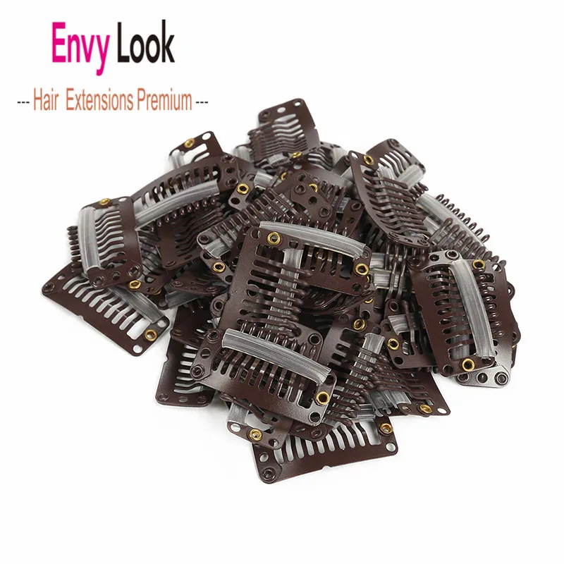 -Бренд: Envy Look -Цвет: черный и белый -Количество: 100 шт. в упаковке. -Размеры Размер упаковки (Д x Ш x В): 3,3x1,3 см -Материал: металл, резина. -С 9 маленькими отверстиями для соединения парика. -Установите и Легко установите ваш парик или шиньон с помощью этих зажимов с защелкой. -Подходит для парикмахерской или личного использования Материал: металл и Львы -Цвет: черный, темно-коричневый, светильник-коричневый, блонд