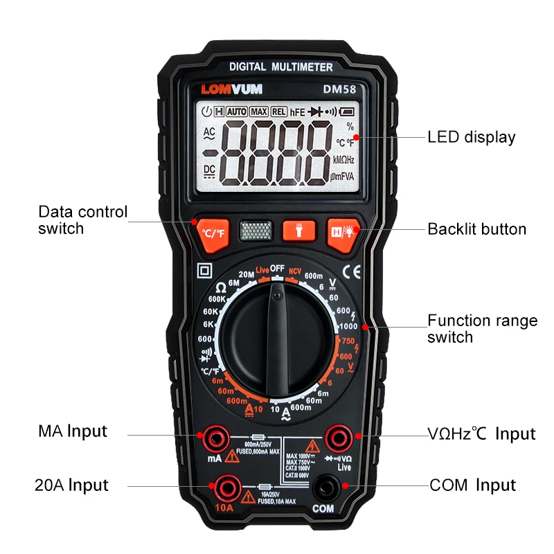 Сопротивление: 600Ω-6MΩ,20MΩ