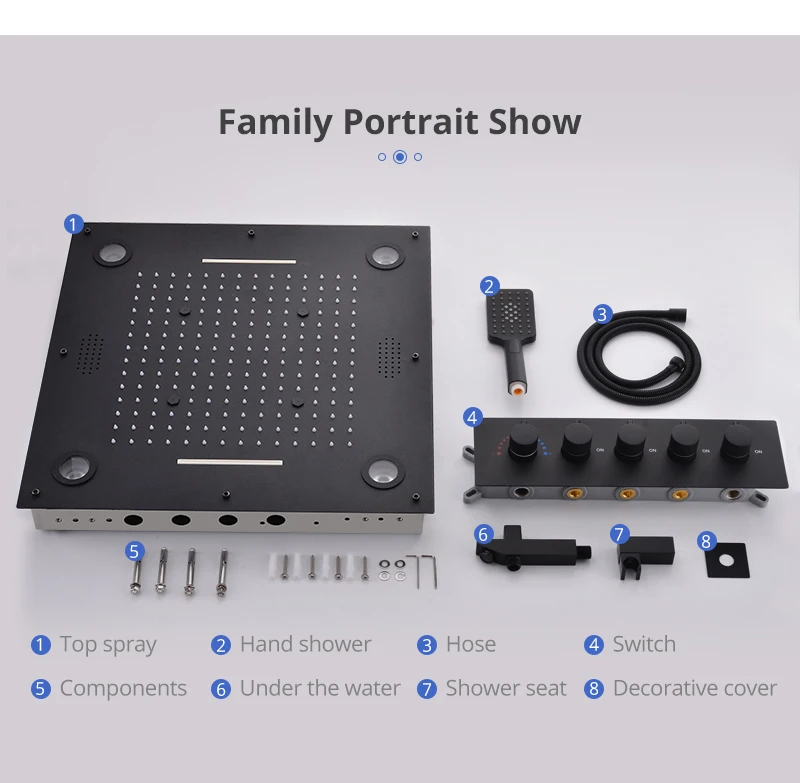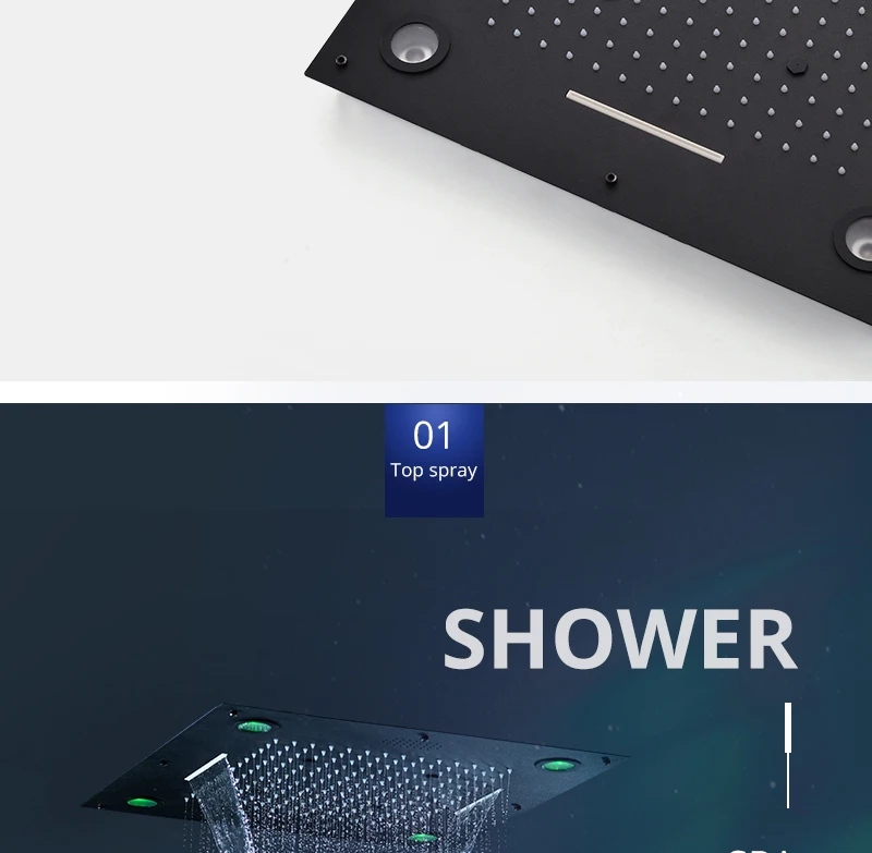 24 дюйма 600x600 мм Музыкальный большой светодиодный Многофункциональный Спа-душ с смесителем