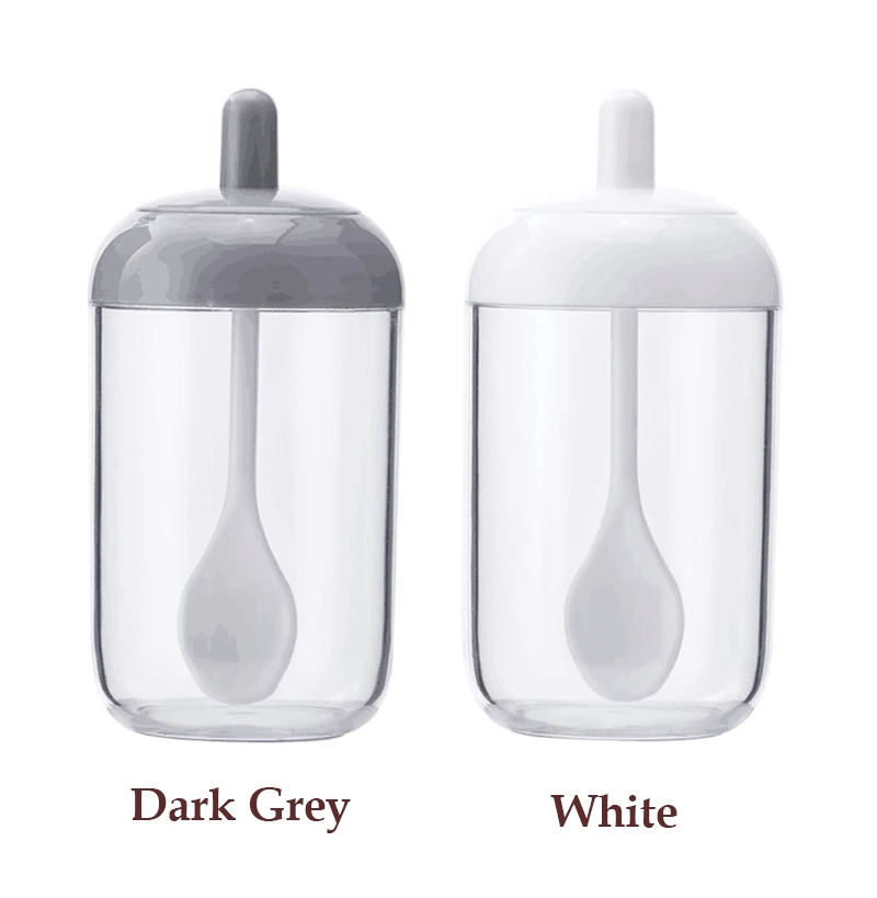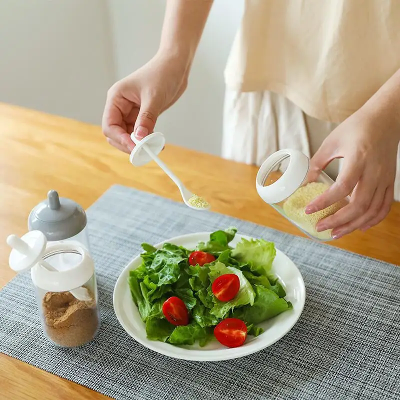 Банка для специй, контейнер для бутылок для приправ, контейнер для кухни с ложкой, прозрачная банка для приправ, Встроенная крышка ложки