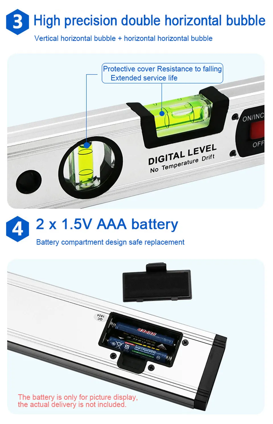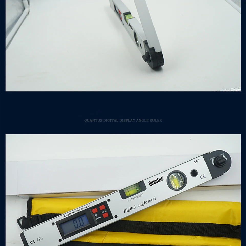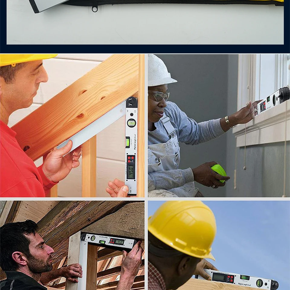 Запись при многих обстоятельствах. Этот широкий диапазон измерения (0-230 °) и высокая точность (± 0,5 °) угол датчика позволяет вам работать с эффективностью и создадут ощущение комфорта. Более того, просто перенести miltre угол для вашей торцевой/скользящей пилы, нажав клавишу MITER. Корпус транспортира изготовлен из алюминия, который прочный и долговечный, подходит для сложной рабочей среды.