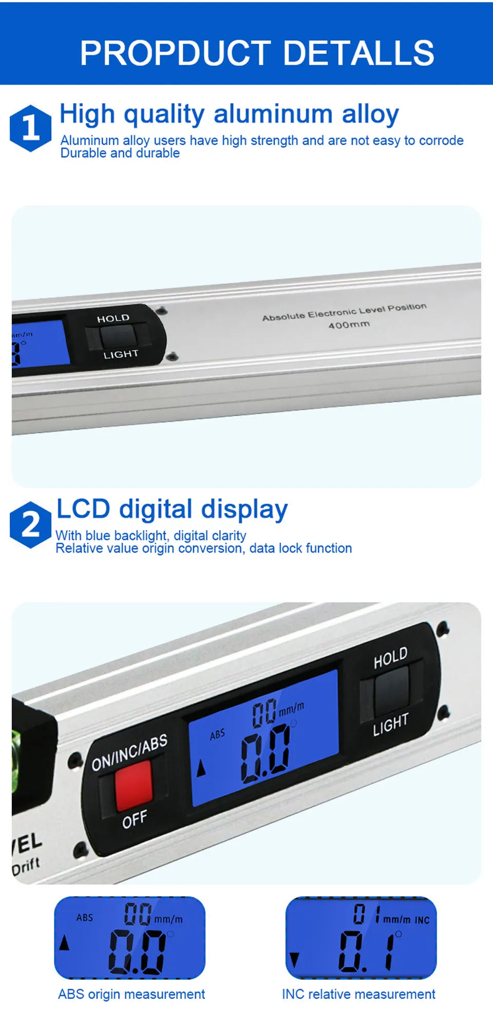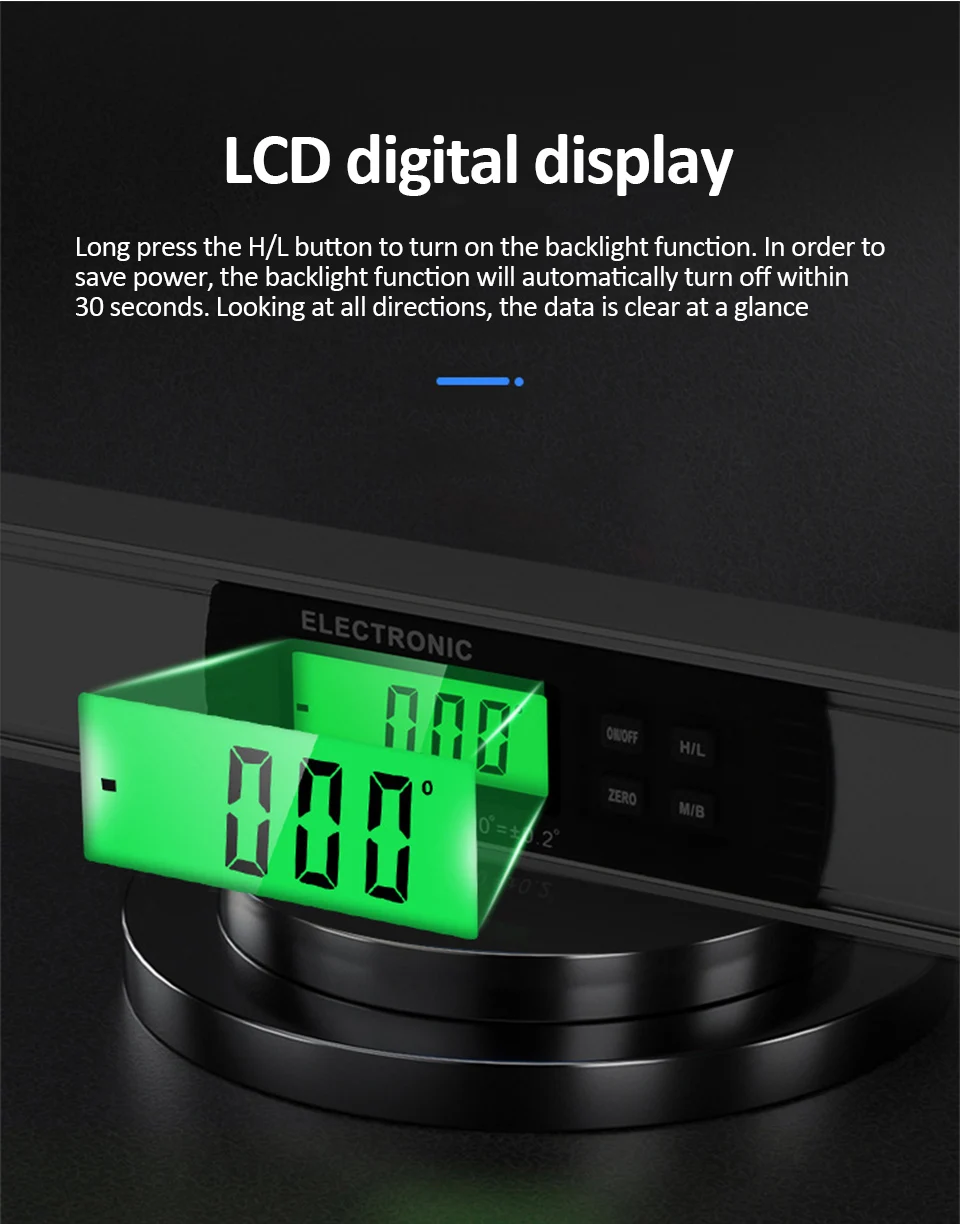 Этот цифровой искатель угла, с ЖК-дисплеем и синим задним светильник, он может видеть измеренный