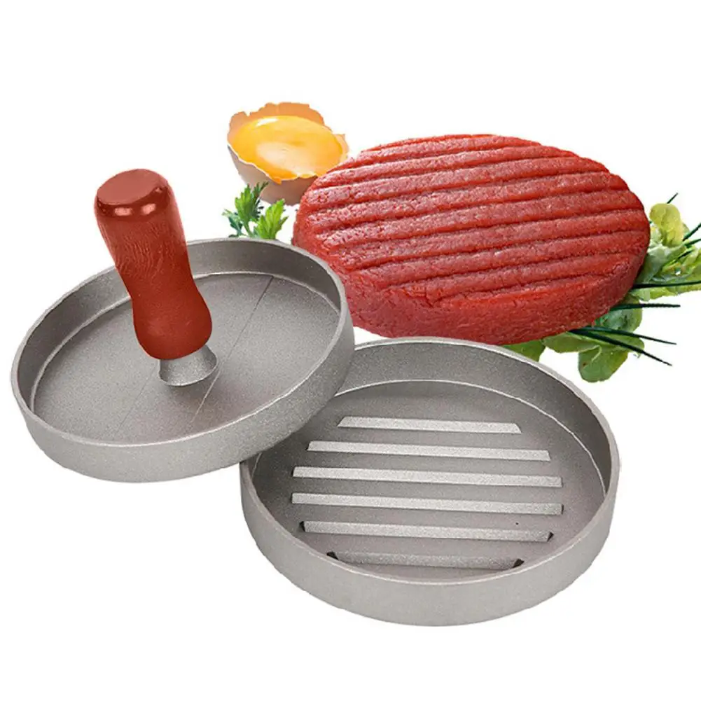 Деревянная круглая ручка в форме гамбургера пресс er алюминиевый бургер мясо говядины Пэтти пресс-форма