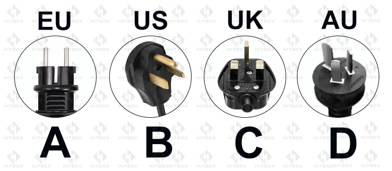 * Штепсельная вилка европейского стандарта * штепсельная вилка стандарта США * штепсельная вилка стандарта Великобритании * штепсельная вилка стандарта Австралии