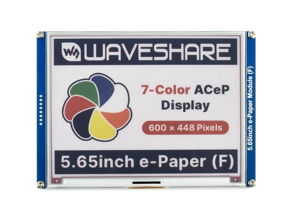 5,65 дюймовый цветной Фул E-Paper E-Ink дисплей модуль, 600 × 448 пикселей, ACeP 7 цветов5,65"7 цветовМодуль E-PAPERНизкое энергопотребление, широкий угол обзора, отображение в виде бумаги без электричества