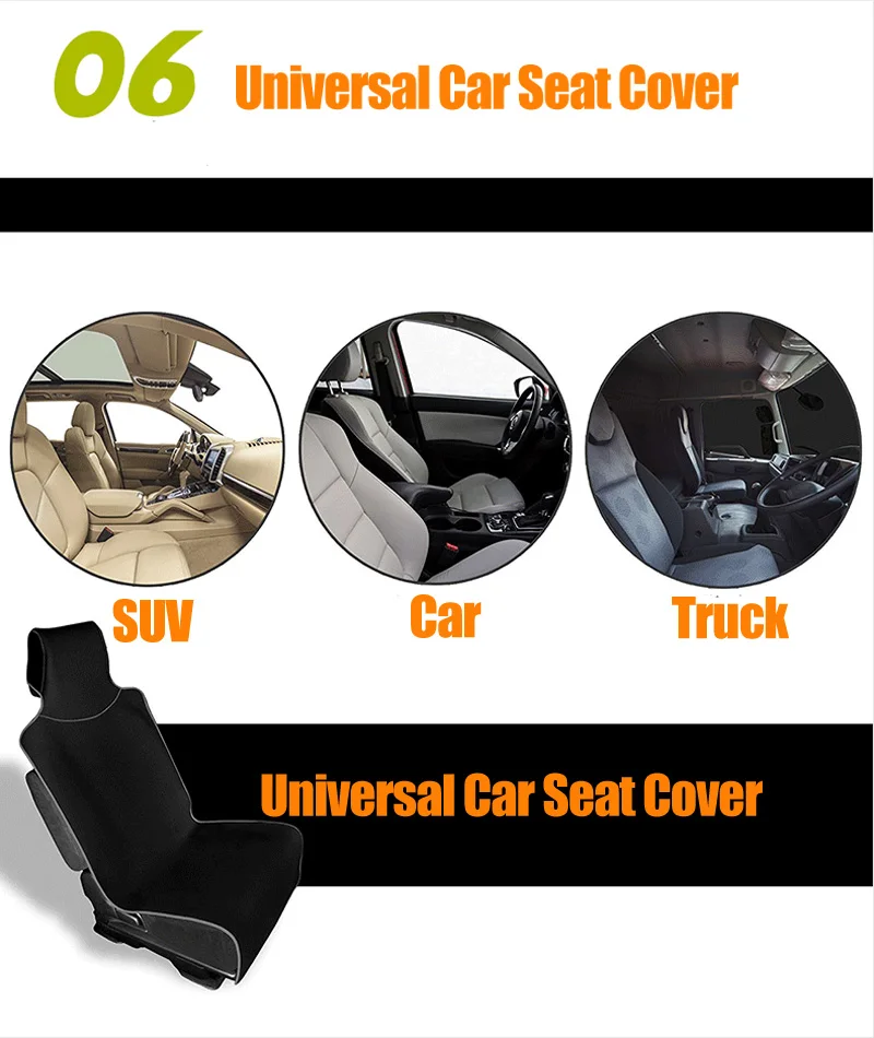 1. Этот чехол для автомобильного сиденья можно использовать после спортзала, тренировки, пляжа, кроссфита и йоги. Он также может быть использован для домашних животных, собак, строительных работников и детского автомобильного сиденья, таким образом наслаждаясь чистой ездой.