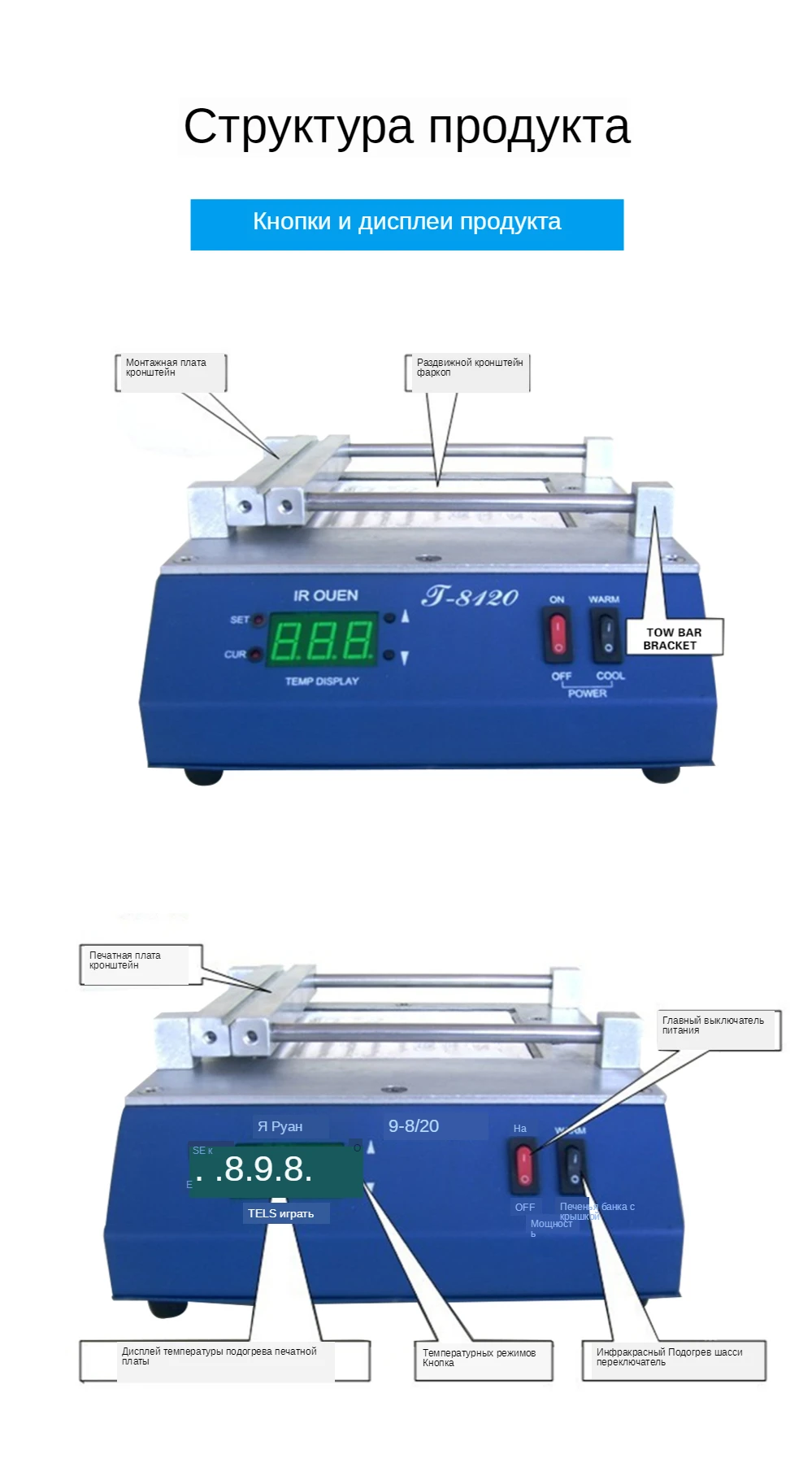 Инфракрасная паяльная станция BGA T-835 печь предварительного нагрева T-8120 SMD инфракрасная ПИД станция отопления Plamform 120*120 мм
