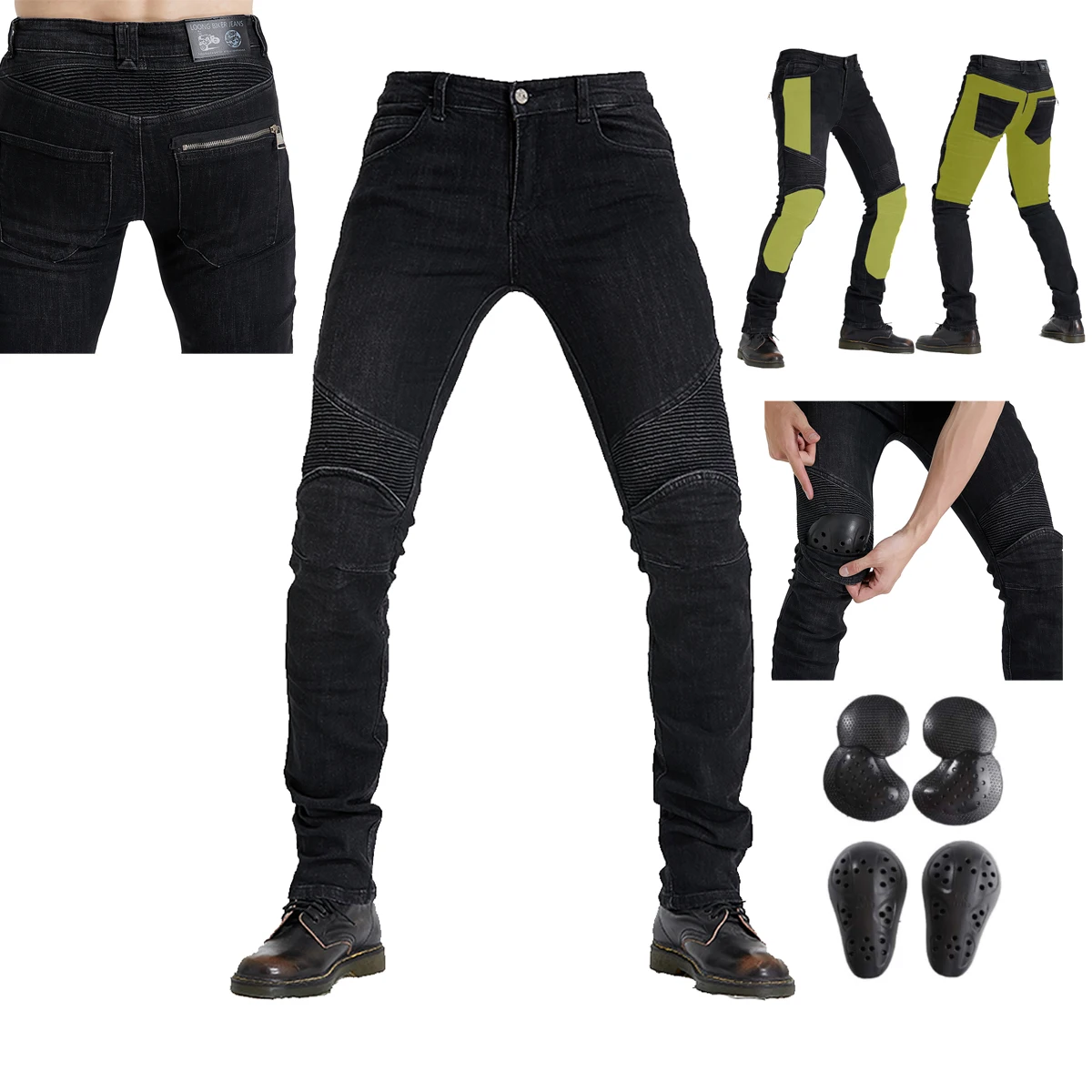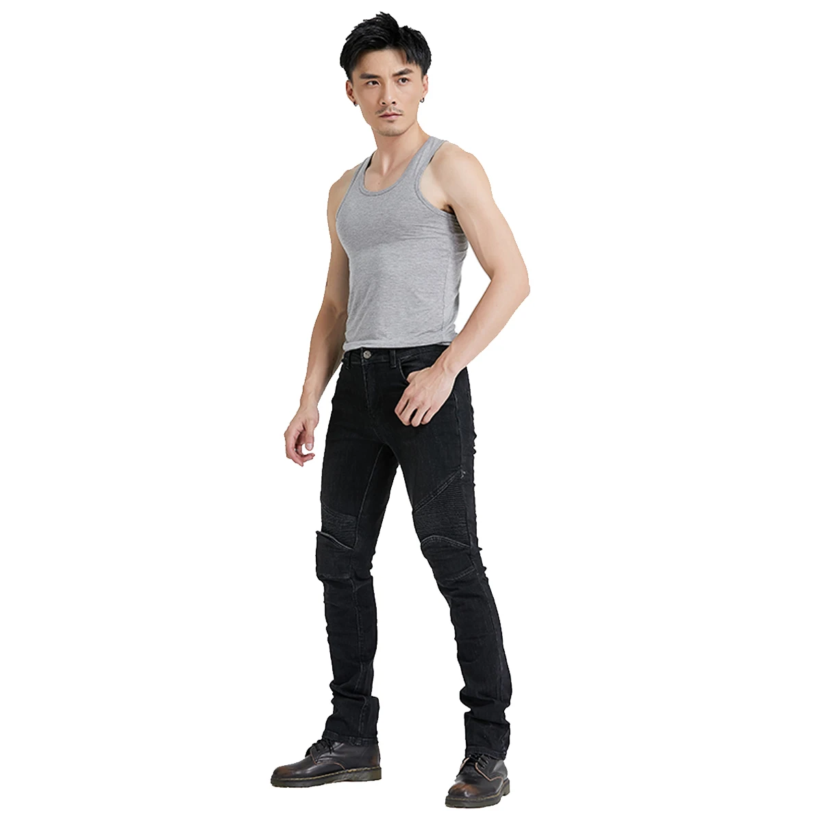 --Материал: сверхпрочная и Прочная Джинсовая ткань 14 унций, верх: 97% хлопок/3% спандекс -Нашивка: подкладка из арамидного волокна на коленях и бедрах, бедрах --Арамидная Защитная подкладка используется в бедрах, коленях, бедрах, делает больше безопасности для всадника -Арамидные волокна также огнестойкие до 400С и устойчивы к порезам. -Прикрепляемые наколенники позволяют гонщикам носить джинсы как повседневные джинсы в повседневной жизни -Цвет: черный, синий -Размер: XS(26),S(28),M(30),L(32),XL(34),XXL(36),XXXL(38) -XS(26)= талия 30 ", бедра: 32,5", Длина: 40,9 ", бедра: 19,2", колено: 13,7 "; -S(28)= Талия 31,5 ", бедра 34,2", Длина: 41,3 ", бедра: 20", колено: 14,5 "; -M(30)= талия 33 ", бедра 35,8", Длина: 41,7 ", бедра 20,8", колено: 15,3" -L(32)= талия 34,5 ", бедра 37,4", Длина: 42,1 ", бедра: 21,6", колено: 16,1" -XL(34)= талия 36 ", бедра: 39", Длина: 42,5 ", бедра: 22,4", колено: 16,9" -2XL(36)= талия 37,5 ", обхват бедер: 40,5", Длина: 42,9 ", обхват бедер: 23,2", выше колена: 17,7" -3XL(38)= талия 39 ", бедра: 42,1", Длина: 43,3 ", бедра: 24", колено: 18,5" В том числе: 1 X мотоциклетные джинсы для езды + 2 X наколенники + 2 X наколенники Защитная подкладка используется в джинсах, покрытых больше областей, чем другие джинсы на рынке: бедра, колени, бедра усилены с арамидной защитной подкладкой, делают больше безопасности для мотоциклиста Долговечность: высококачественные байкерские брюки, прочные, защищающие от агаистской борьбы, спадают, нагревают, вырезают, истирают Съемные бронированные наколенники и наколенники для защиты: когда они не используются, их можно быстро разгрузить (прикрепляемые наколенники позволяют гонщикам носить джинсы как повседневные джинсы в повседневной жизни.) Складывающийся дизайн для колена и спины: может придать рыцару большую гибкость, очень эргономичная высокотехнологичная ткань телескопической функции