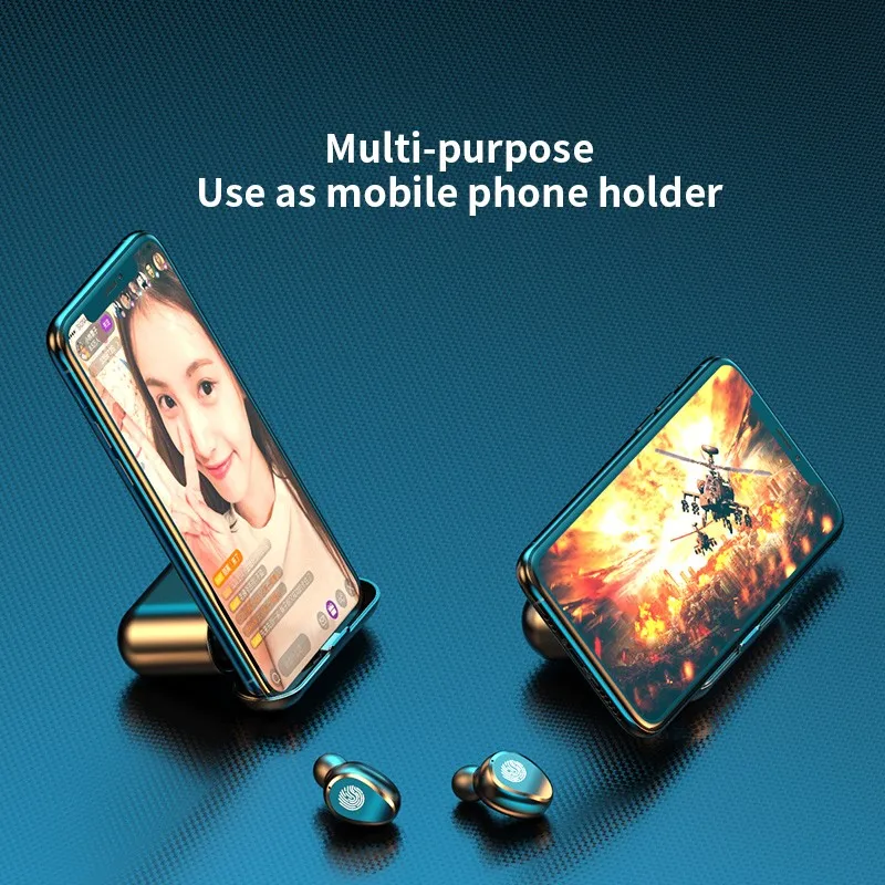 1. Спецификация Bluetooth: V5.0 2. Профиль Bluetooth: A2DP,AVRCP, HFP;HSP 3. Рабочее напряжение: 3,1 В ~ 4,2 В 4. Напряжение зарядки: 5V-1A 5. Емкость аккумулятора гарнитуры: 50 мА · ч 6. Емкость аккумулятора ящика: 2000 мАч 7. Расстояние передачи:>10 м 8. Время вызова: 4-5 ч 9. Время воспроизведения: 4-5 ч 10.Waterprof :IPX7 11. Время зарядки гарнитуры: 30-45 мин 12. Время зарядки зарядного устройства: 1 ч Продукты включают в себя 1 * одна пара bluetooth-гарнитур 1 * зарядное устройство 1 * зарядный кабель 1 * Руководство пользователя 4 * Ушная крышка