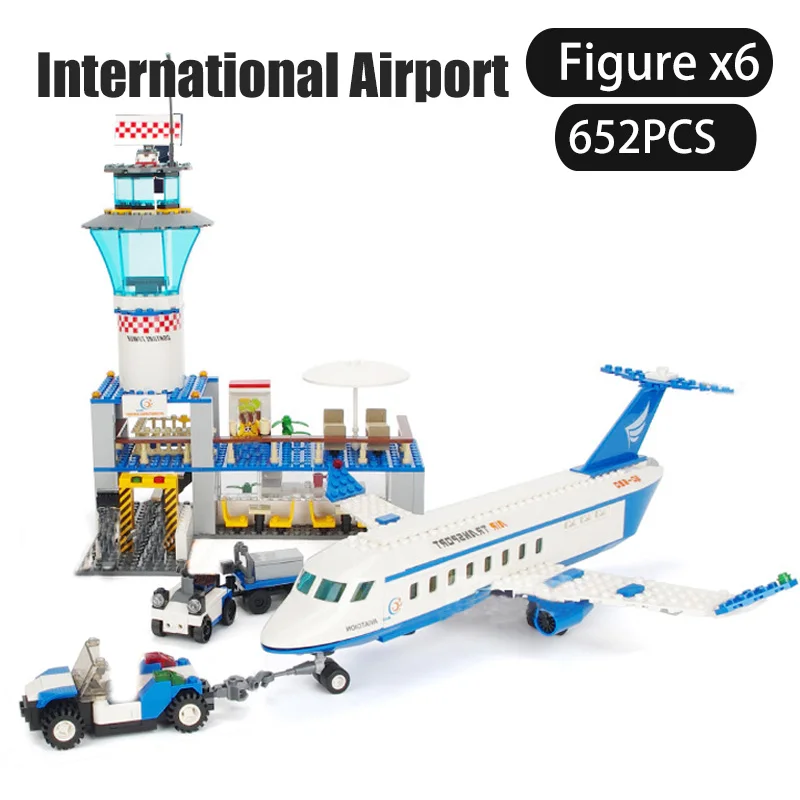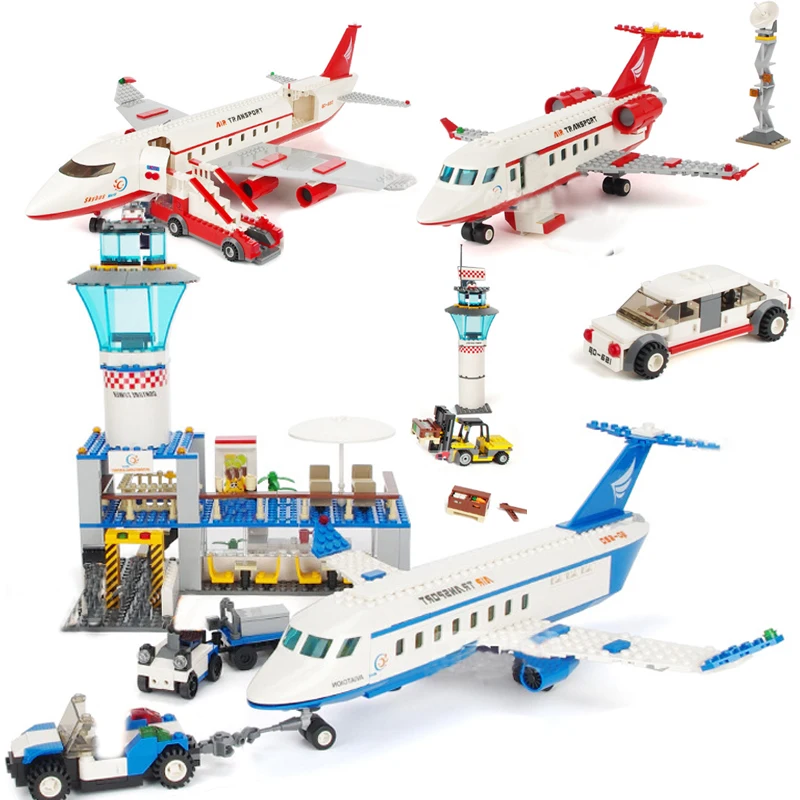 Большой пассажирский самолет в международном аэропорту города, строительные блоки, развивающие строительные блоки, игрушки для детей, подарки