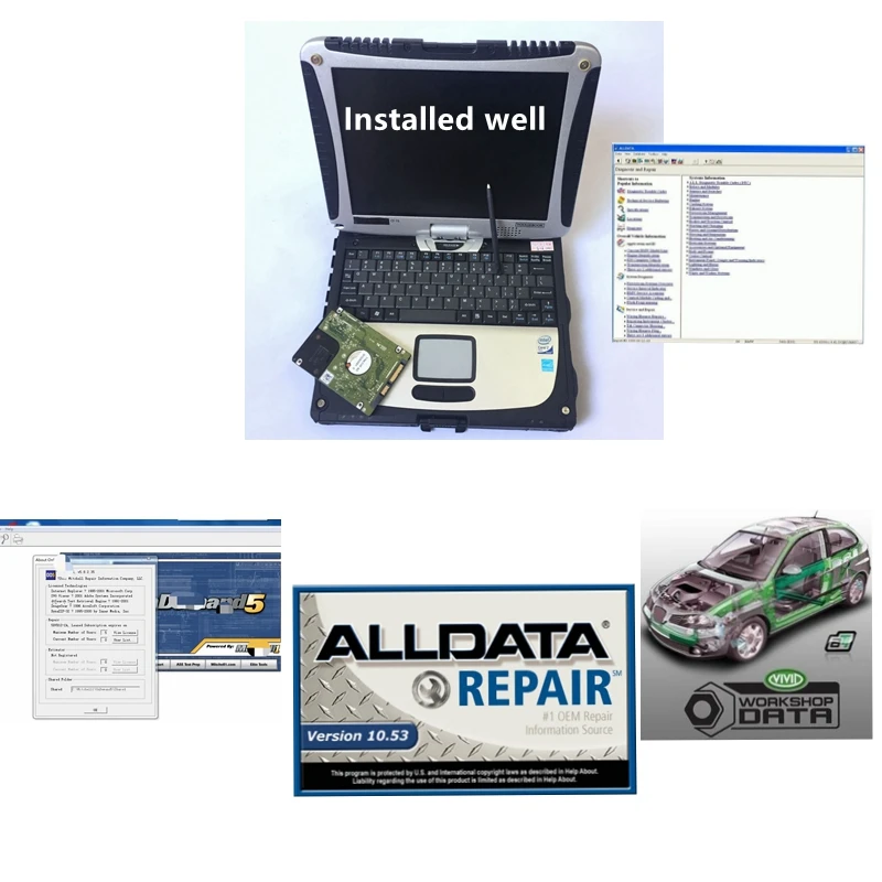 1. 1 ТБ HDD:Установлен хорошо с Alldata, Mit .. chell, Vivid 3 программного обеспечения, готов к работе. (Вам просто нужно вставить hdd в ноутбук, затем он может работать)